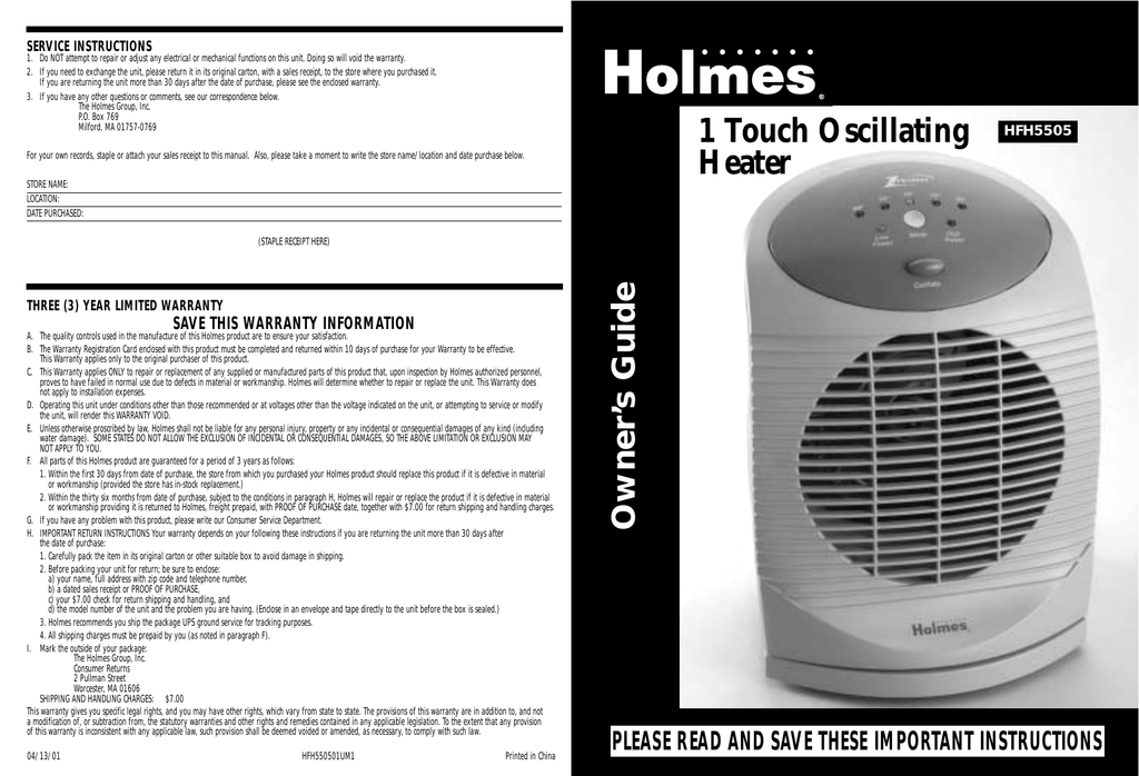 Holmes Comfort Temp Heater Manual